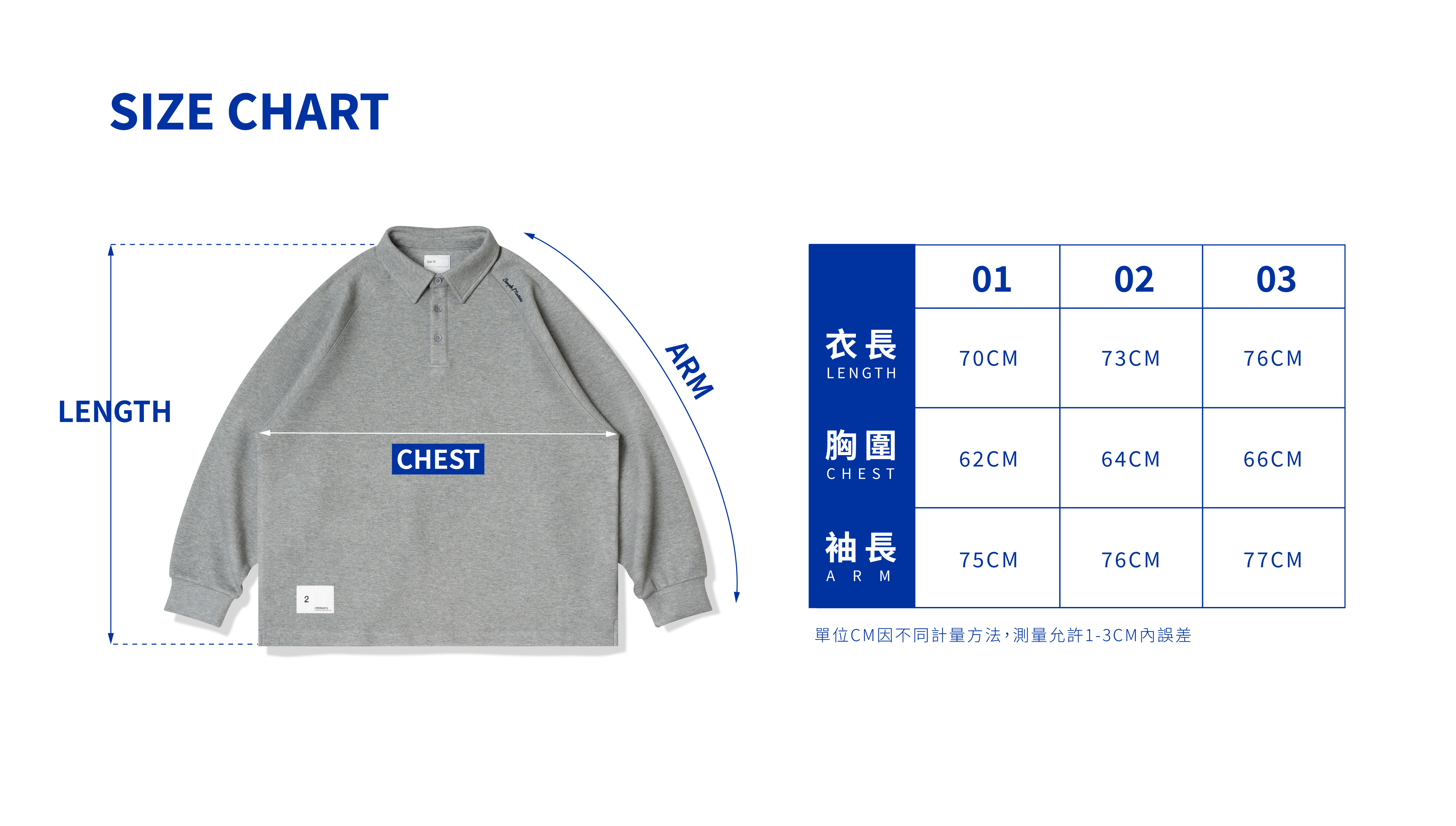02:衣長73cm / 胸寬64cm / 袖長76cm