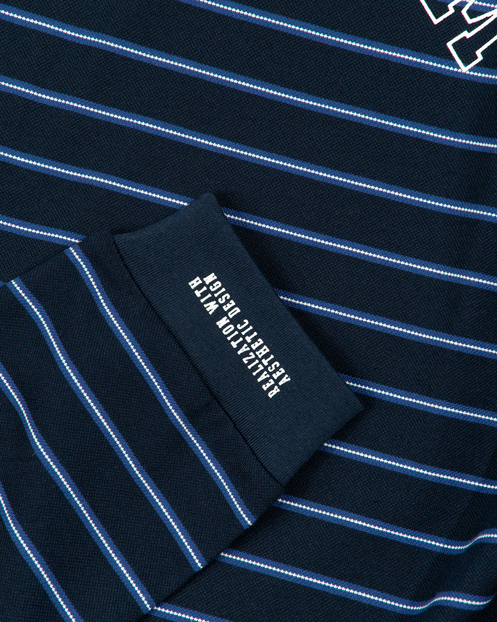 在變化萬千的服裝洪流,條紋作為經典元素以最純粹的角度出發,藉由粗粒布呈現條紋層次,內層構造編織出細膩手感,圖文呼應元素的延伸,建構百搭基礎的生活模樣。