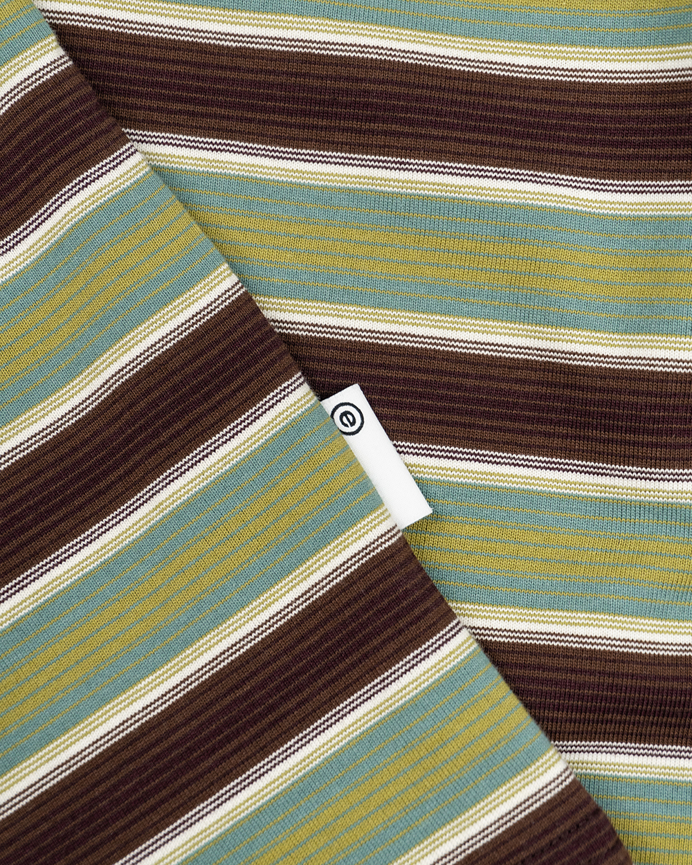 撞色條紋打造日常風格,粗細紋理呈現漸層般的視覺效果,簡單擁有豐富的穿搭輪廓,此次採用棉質雙紗織成,紮實質地且擁有細緻觸感,同時提高透氣性能,帶來自然舒適的穿著體驗。