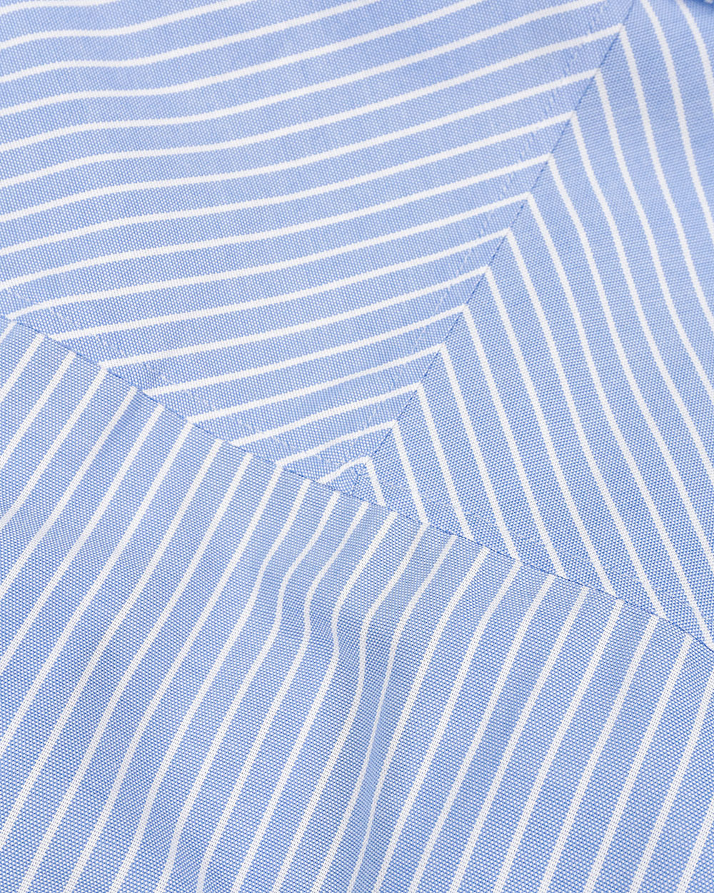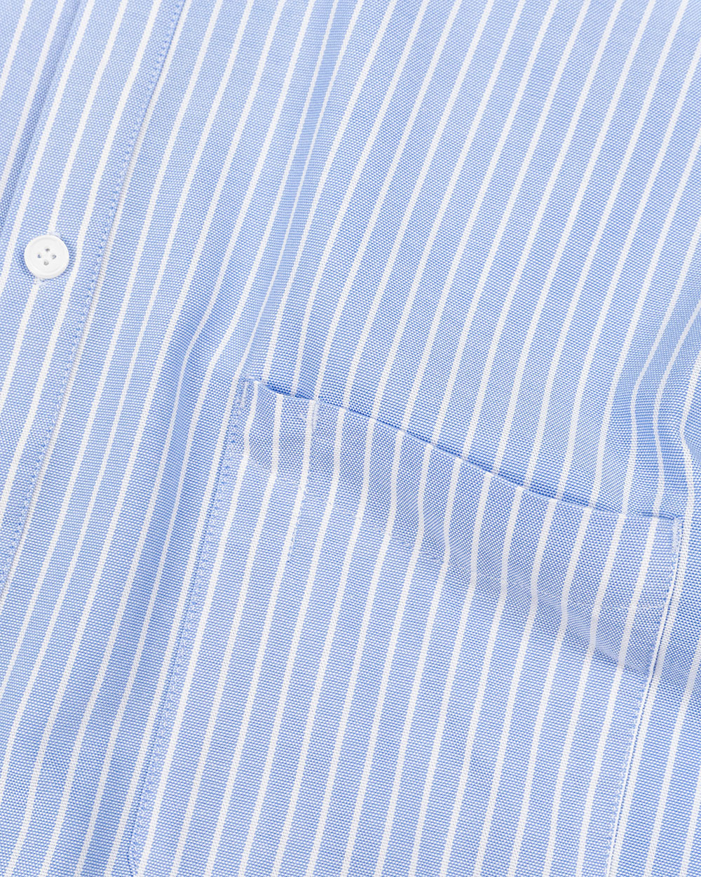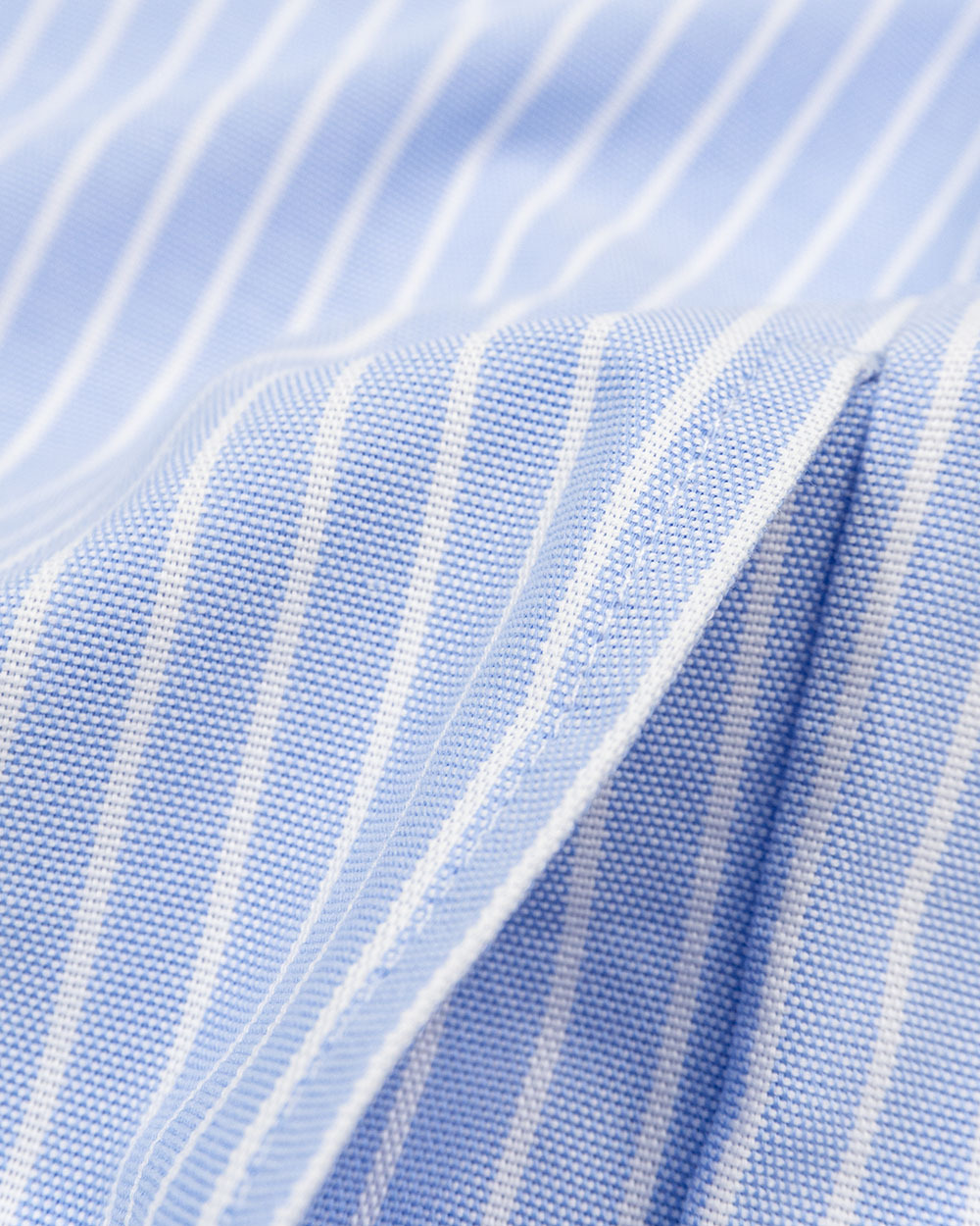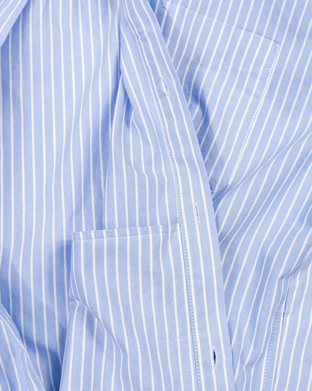 採用經典藍白間隔條紋,傳遞著清新、簡約而穩重的氣息,在春夏日常穿搭或作為輕鬆的正式場合,都能輕鬆駕馭、展現俐落風格。