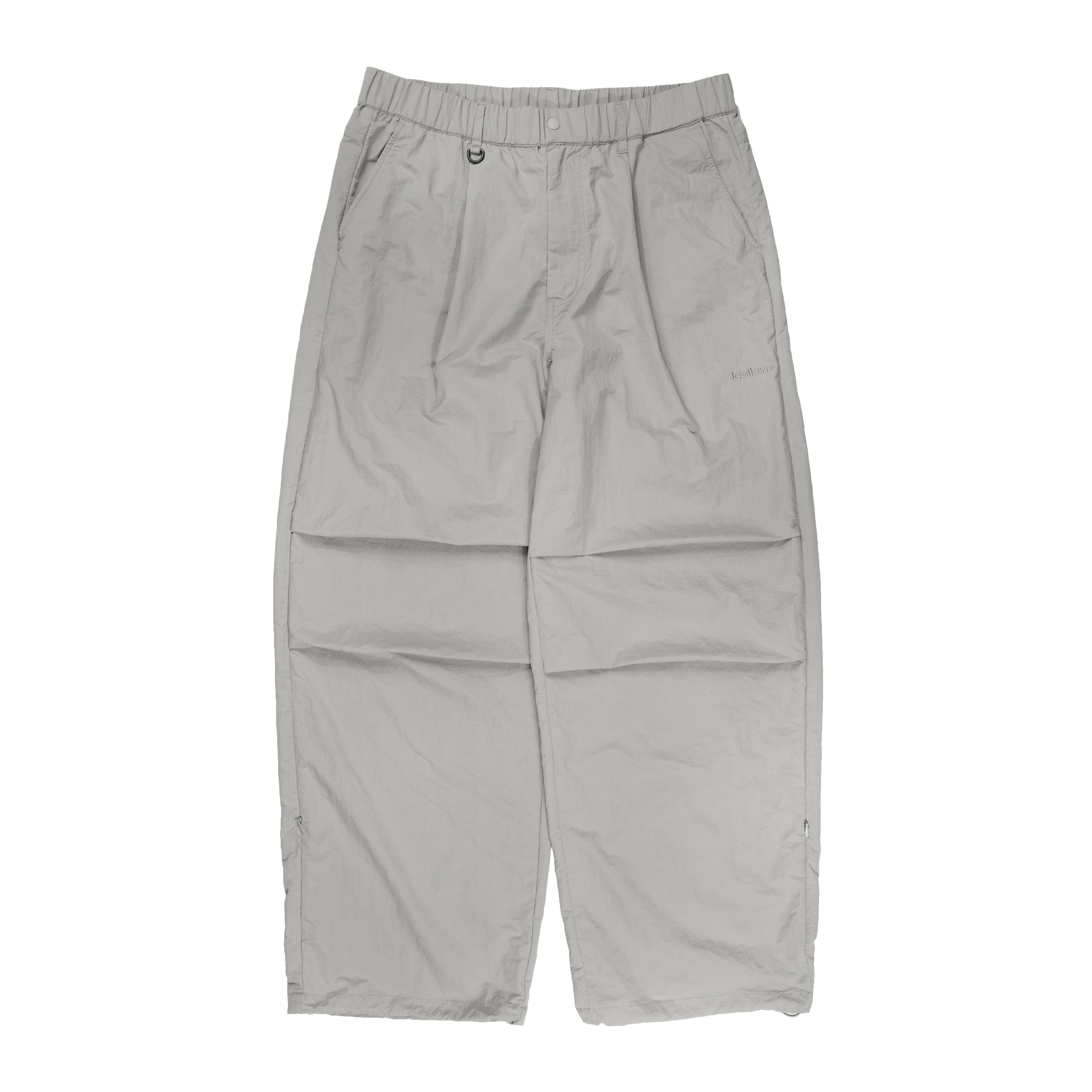以降落傘褲為核心輪廓,重新詮釋機能與造型之間的關係,寬鬆的廓形賦予身體自由空間,而側邊開口設計,則在穿著之間建立了呼吸的節奏,不僅能因應穿著需求也讓輪廓隨步伐而改變,流露出獨特的動態美感。