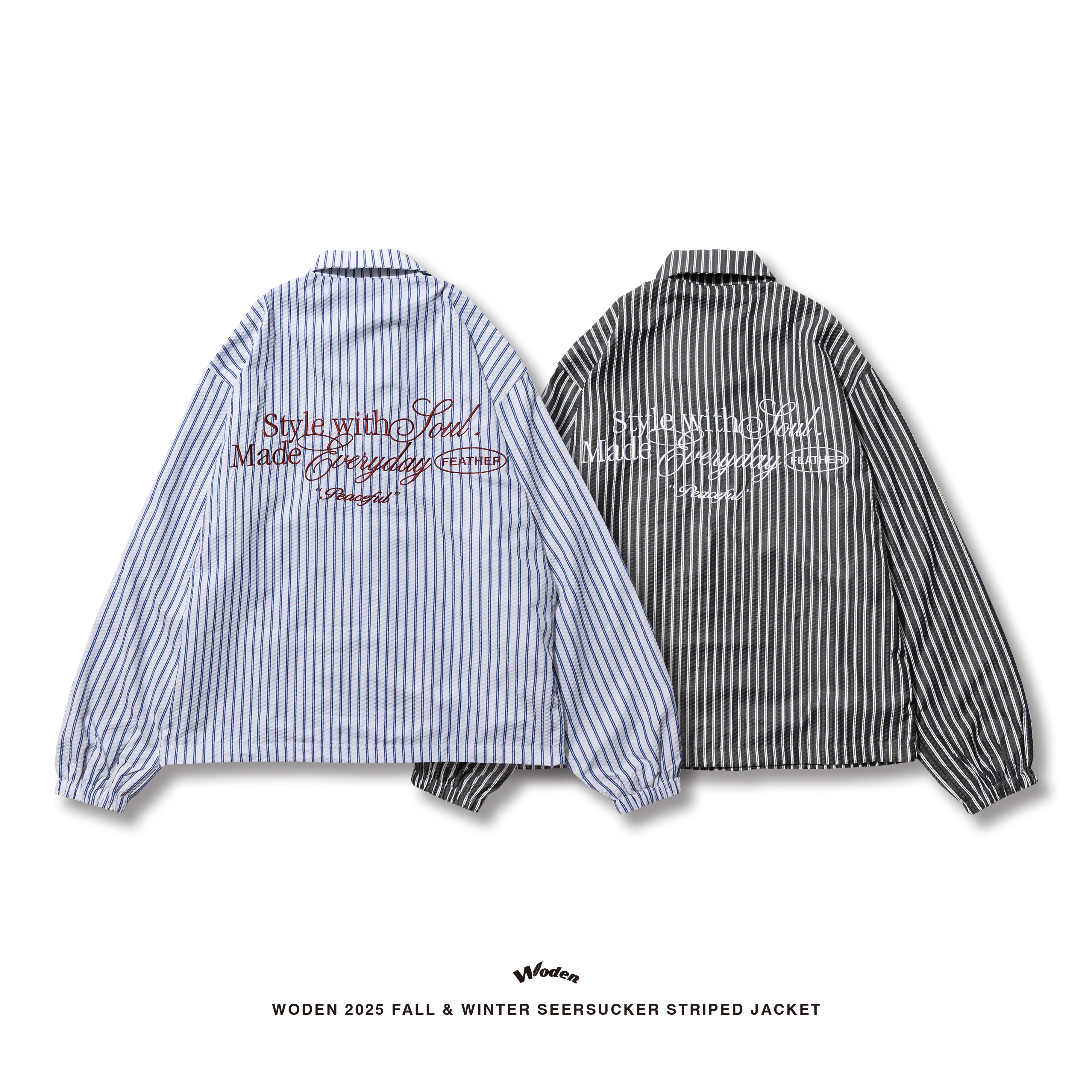 WODEN 2025 Fall & Winter Seersucker Striped Jacket