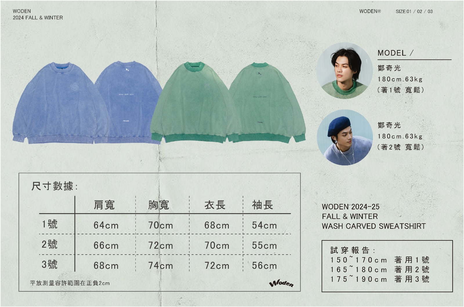 面料使用400G重磅毛圈布,保有刷毛面料硬挺特性,但不會過於厚重,非常適合台灣氣候穿著。經過特殊炒鹽洗舊工藝,面料表面經過水洗後色落自然,質地柔軟舒適卻保有一定挺度。
